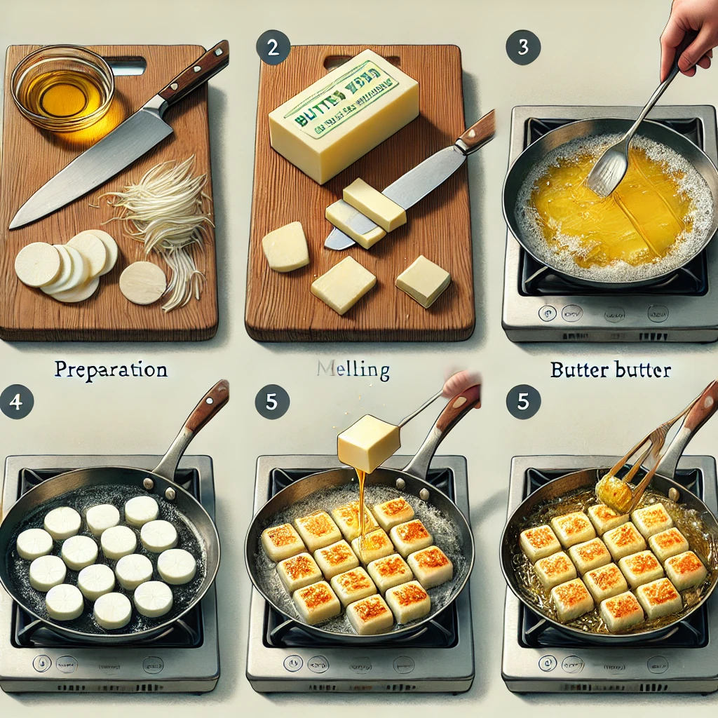 2. νŒ¬μ„ μ€‘μ•½λΆˆλ‘œ 달ꡰ ν›„, 버터λ₯Ό λ„£μ–΄ λ…Ήμ—¬ μ£Όμ„Έμš”.