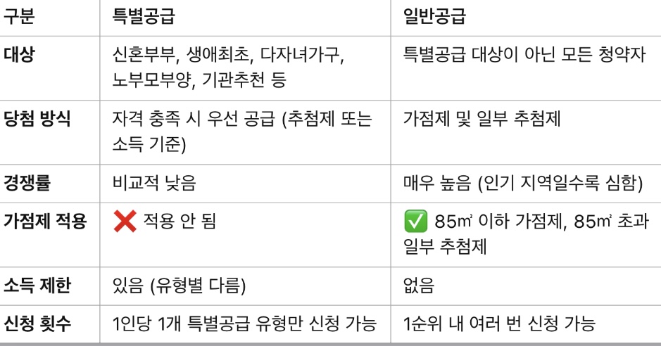 ํน๋ณ๊ณต๊ธ์ ์ฌํ์ ๋ฐฐ๋ ค๊ฐ ํ์ํ ๊ณ์ธต์ด๋ ํน์ ์กฐ๊ฑด์ ์ถฉ์กฑํ๋ ์ฌ๋๋ค์๊ฒ ์ํํธ๋ฅผ ์ฐ์ ์ ์ผ๋ก ๊ณต๊ธํ๋ ์ ๋์์. ์ฝ๊ฒ ๋งํ๋ฉด, ์ผ๋ฐ๊ณต๊ธ๋ณด๋ค ๊ฒฝ์๋ฅ ์ด ๋ฎ๊ณ , ๋น์ฒจ ํ๋ฅ ์ด ๋์ ์ ์๋ ์ฒญ์ฝ ๊ธฐํ๋ผ๊ณ ํ ์ ์์ด์.