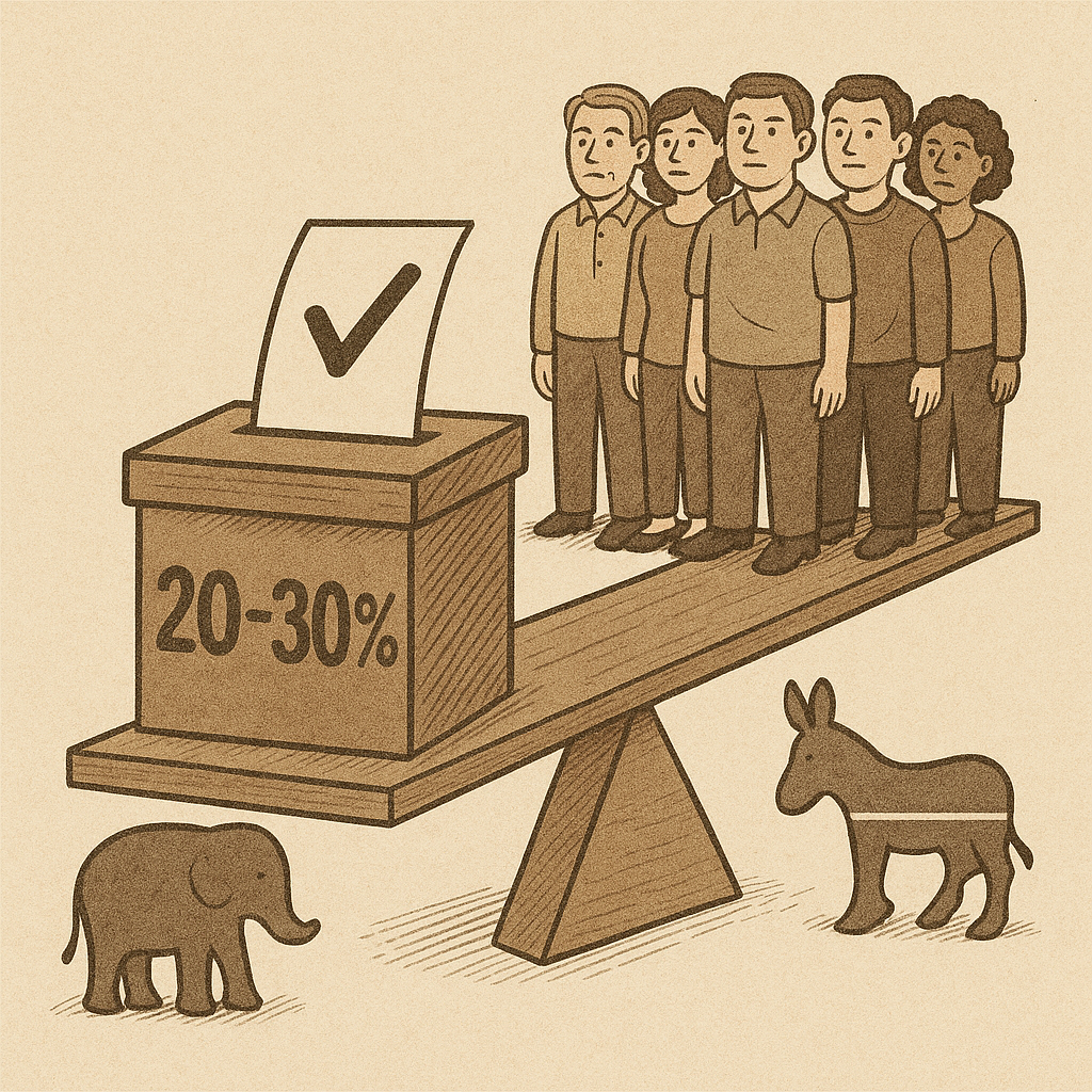 ๋ณดํธ์ธต์ ์ ์ฒด ์ ๊ถ์ ์ค 20~30% ์์ค์ผ๋ก ์ถ์ ๋๋ฉฐ,์ด๋ค์ด ๋๊ตฌ์๊ฒ ๋ง์์ ์ฃผ๋๋์ ๋ฐ๋ผ ์ ๊ฑฐ ๊ฒฐ๊ณผ๊ฐ ์์ ํ ๋ฌ๋ผ์ง ์ ์์ต๋๋ค.